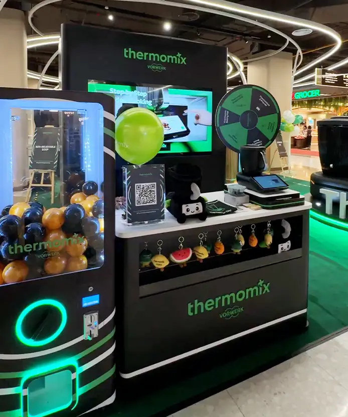 A web-based digital journey developed for Thermomix Malaysia's TM7 launch event across three premier Klang Valley shopping destinations: The Exchange TRX (Kuala Lumpur), Sunway Pyramid (Petaling Jaya), and Starling Mall (Damansara). Powered by IMX Engine™ with real-time analytics via the IMX Analytics Dashboard. Shoppers register via WhatsApp 2FA and complete a multi-station experiential flow to qualify for gift redemption.